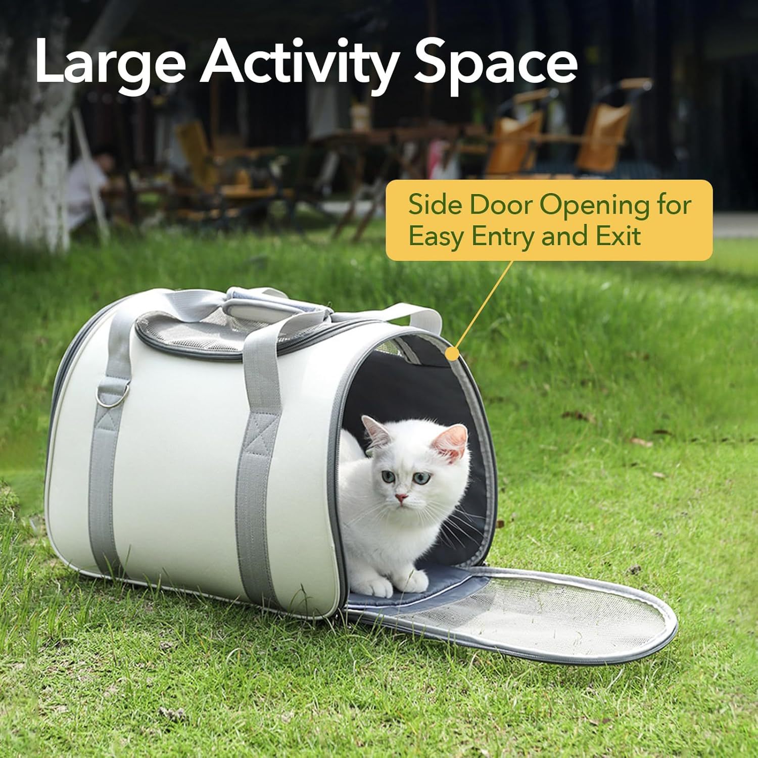 Easy Access: Side door design provides simple entry/exit and includes a storage pocket for essentials.