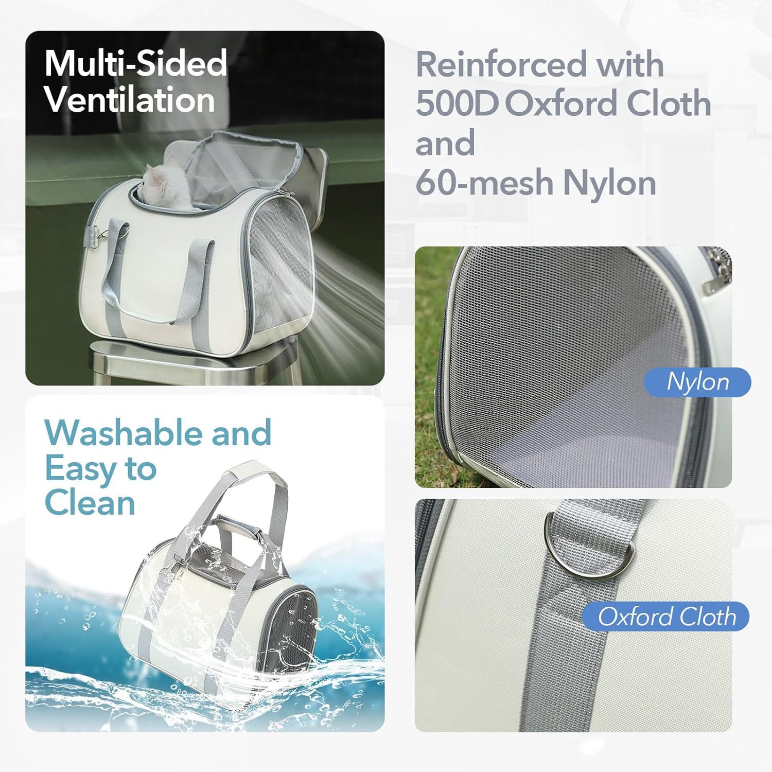 Ventilation: Breathable mesh sides ensure air circulation to keep pets cool during travel.